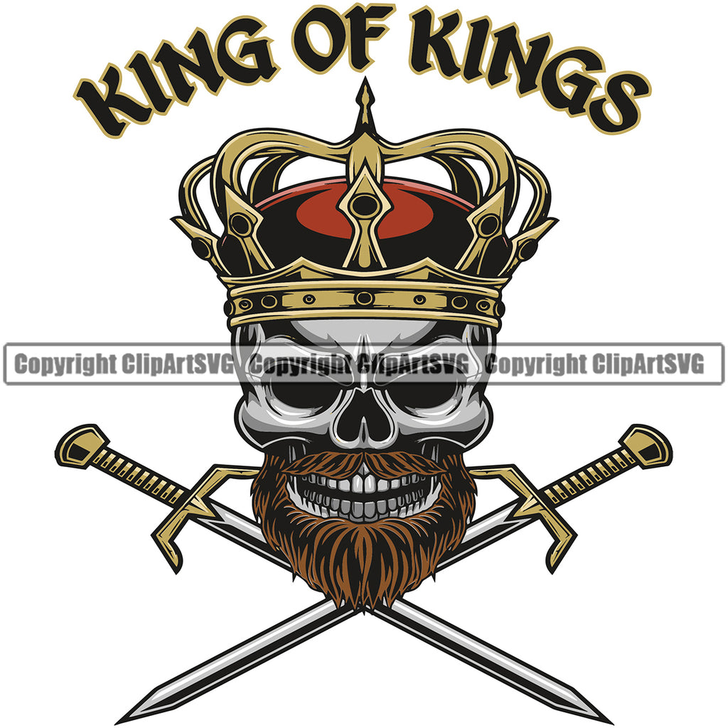 King Of Kings Skull Skeleton Crossed Sword Color Design Element Death Crown On Head Skeleton Dead Face Horror Human Bone Evil Tattoo Grunge Scary Gothic Art Logo Clipart Svg Clipart Svg